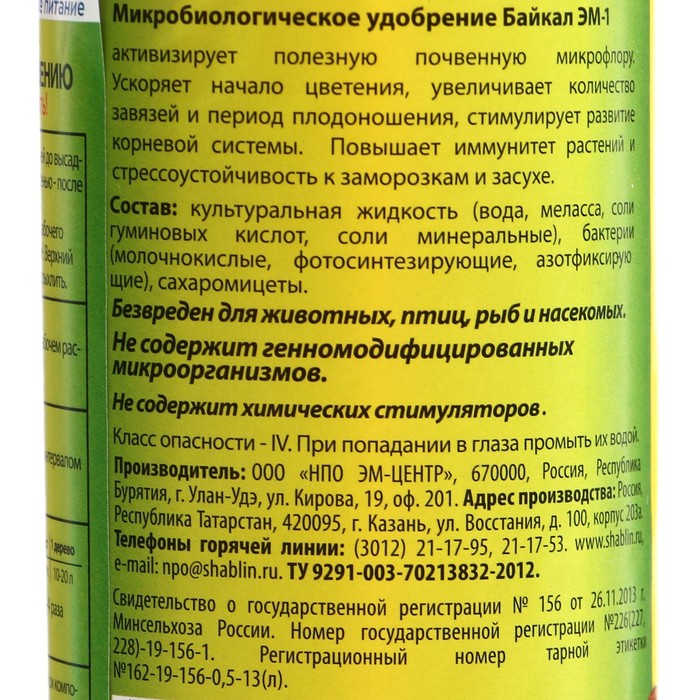 Микробиологическое удобрение "Байкал-ЭМ1", 0,5 л