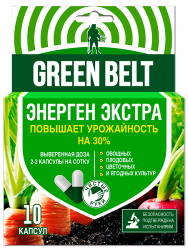 Применение Энергена повышает энергию прорастания и всхожесть семян, стимулирует рост и развитие растений, защищает растения от неблагоприятных факторов, заморозков, засухи и повышает приживаемость растений при пересадке рассады. Энерген снижает содержание нитратов в плодах, нейтрализует радионуклиды и соли тяжелых металлов. Результат действия Энергена на растение — повышение урожайности на 30-40%, увеличение содержания витаминов и других полезных веществ в овощах, ягодах и плодах, ускорение созревания на 7-10 дней.