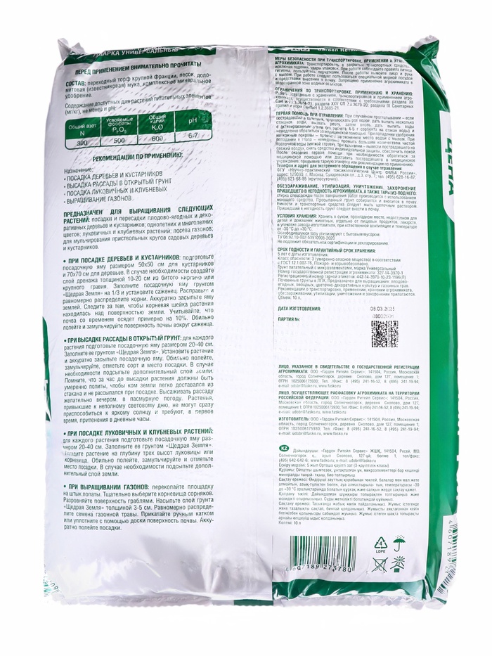 Грунт универсальный Щедрая земля - готовый к применению универсальный питательный грунт с минеральными удобрениями.