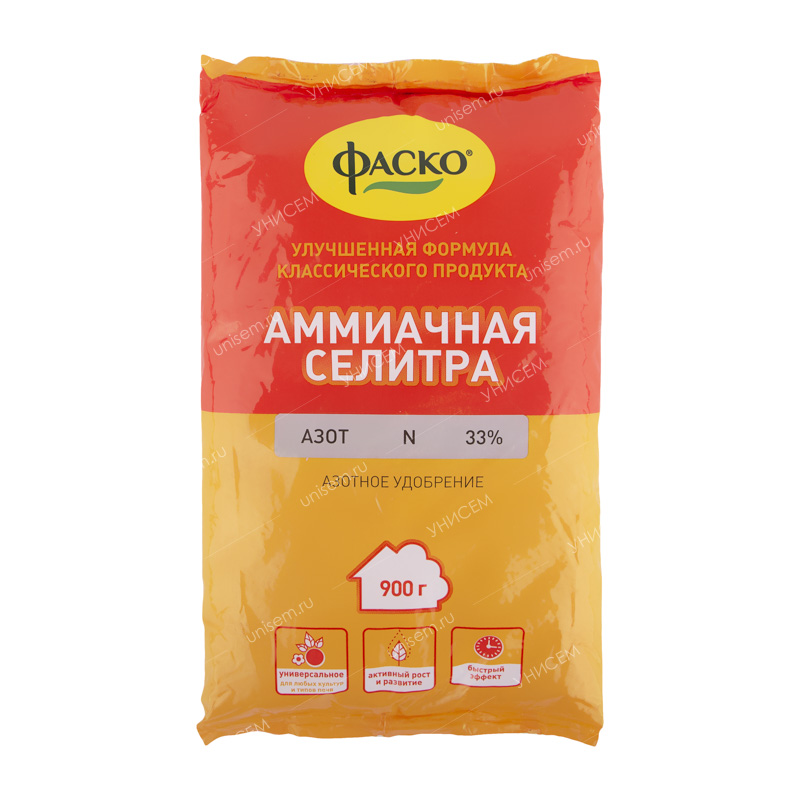 Фаско, удобрение на основе аммиачной селитры– традиционное минеральное азотное удобрение. Применяется для корневой подкормки всех культур в течение всего периода развития растений. Препарат активирует рост и развитие, повышает урожайность и качество продукции, формирует устойчивость к различным заболеваниям.• Удобрение содержит полный комплекс веществ, необходимых для полноценного и сбалансированного питания растений.