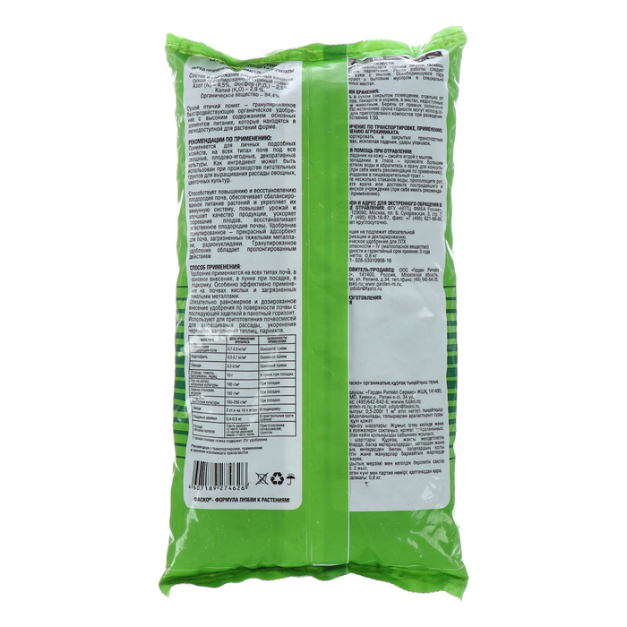 Удобрение органическое сухое Фаско, Куриный помет, 0,8 кг