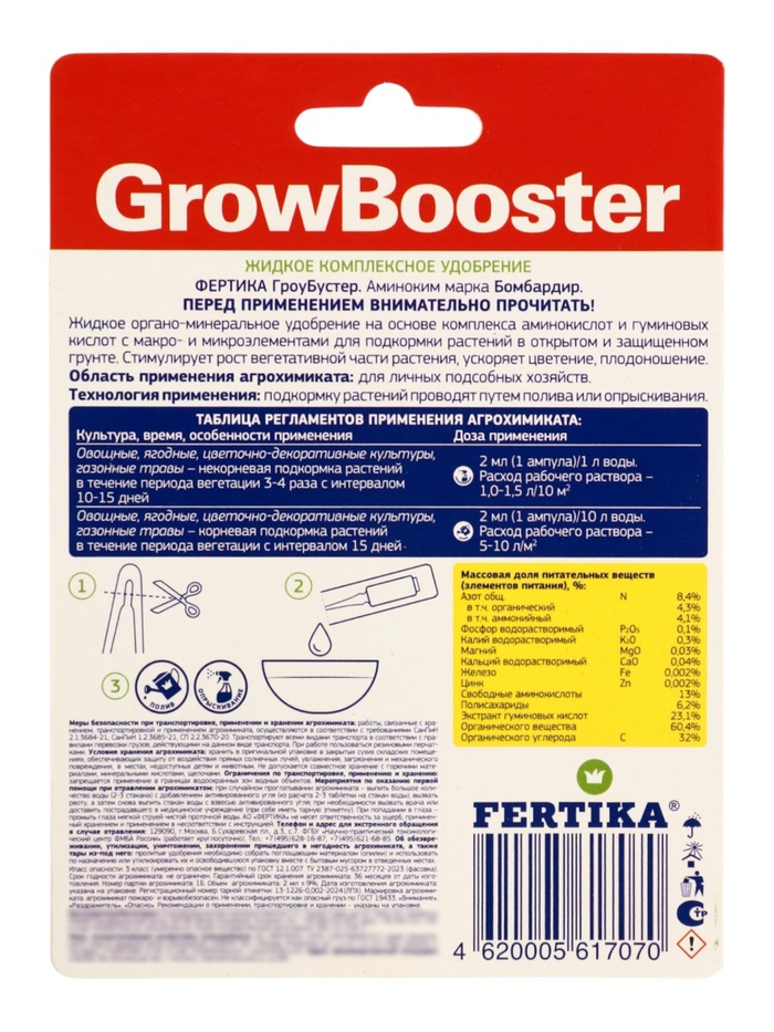 Эффект: Активация роста, Увеличение урожая, Увеличение зелёной массы, Антистресс, Стимуляция завязей, Плодоношение, Повышение иммунитета и стрессоустойчивости