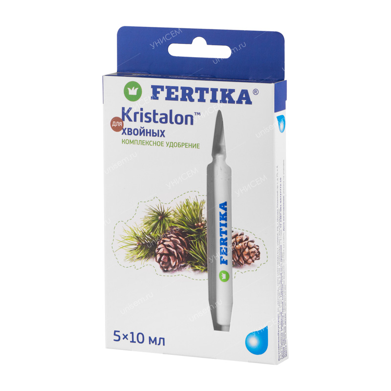 FERTIKAKristalonдля хвойных культур– жидкое комплексное минеральное удобрение с микроэлементами. Применяется в качестве корневой и внекорневой подкормки для комнатных (кипарисовиков, криптомерии, араукарии), и садовых хвойных растений. Препарат способствует активному росту и развитию, улучшает декоративные качества хвои, продлевает срок службы грунта горшечных культур, формирует устойчивость растений к неблагоприятным условиям среды.• Удобрение содержит полный комплекс веществ, необходимых для полноценного и сбалансированного питания растений.