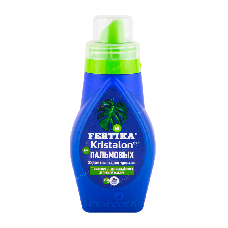Fertika Kristalon для пальмовых– жидкое комплексное минеральное удобрение. Применяется для корневой и внекорневой подкормки всех видов фикусов, пальм, драцен, юкк. Препарат повышает интенсивность окраски цветов и листьев растений, способствует активному росту и развитию, придает красивый декоративный внешний вид растениям и продлевает срок службы грунта горшечных культур.• Удобрение содержит полный комплекс веществ, необходимых для полноценного и сбалансированного питания растений.