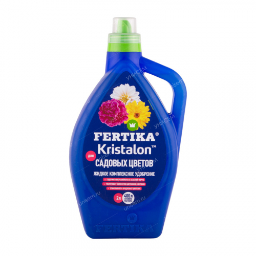 FERTIKAKristalon для садовых цветов– жидкое комплексное минеральное удобрение с микроэлементами в хелатной форме. Применяется в качестве корневой и внекорневой подкормки для однолетних и многолетних садовых цветов, декоративно-лиственных и декоративно-цветущих растений, декоративных кустарников. Препарат способствует активному росту и развитию, стимулирует развитие корневой системы, повышает интенсивность окраски цветов и листьев декоративных культур, увеличивает продолжительность цветения.• Удобрение содержит полный комплекс веществ, необходимых для полноценного и сбалансированного питания растений.