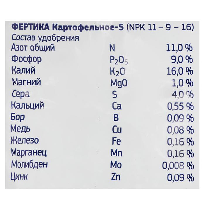 * Состав и соотношение питательных элементов подобраны с учетом биологических особенностей культуры.