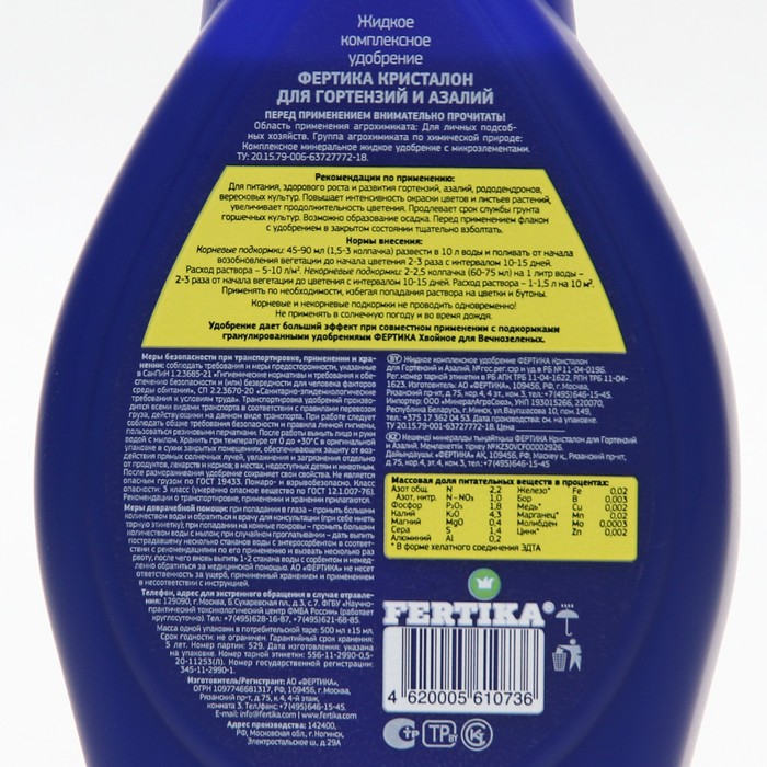 Удобрение «Фертика» «Кристалон» для гортензий и азалий, 500 мл