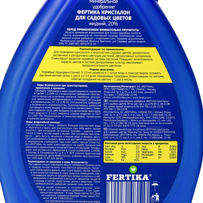 Удобрение «Фертика» «Кристалон» для садовых цветов, 500 мл