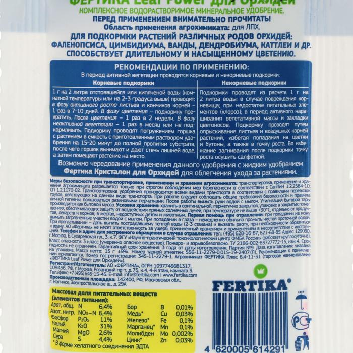 Удобрение минеральное Фертика Leaf Power для орхидей, 15 г