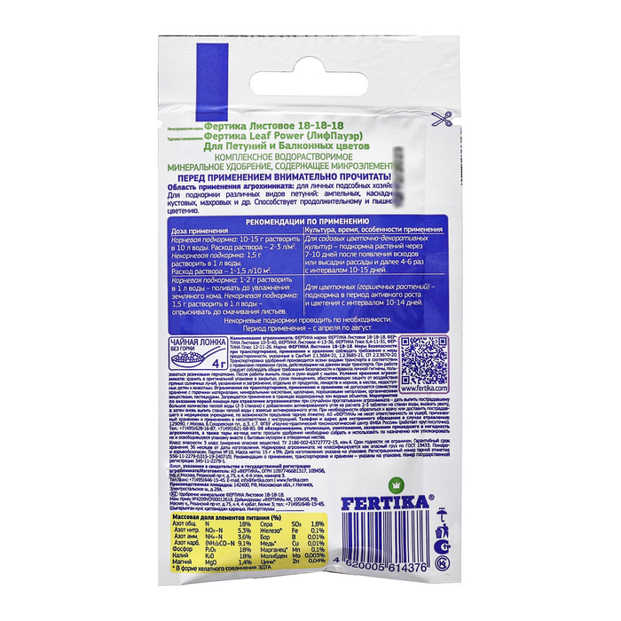 Удобрение минеральное Leaf Power, для петуний и балконных цветов, 15 г, «Фертика»