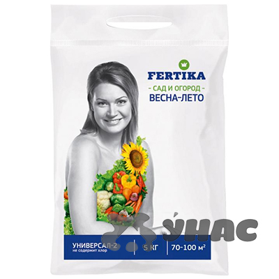 FERTIKA "Универсал-2" - комплексное гранулированное удобрение. Рекомендуется для выращивания овощных, зеленных, плодово-ягодных культур, декоративных, хвойных деревьев и кустарников. Содержит все необходимые для питания растений макро и микроэлементы в оптимальном соотношении. Не содержит хлора и не подкисляет почву. Способствует хорошему росту растений и получению высокого урожая.
