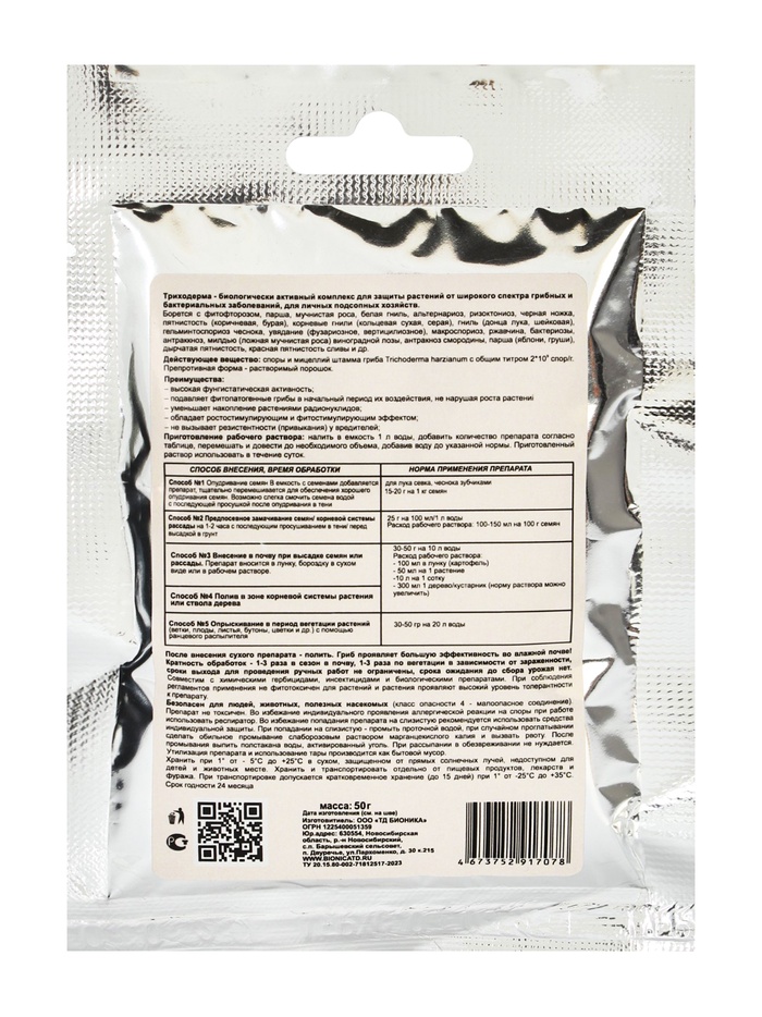 Действующие вещества: Споры грибов Trichoderma