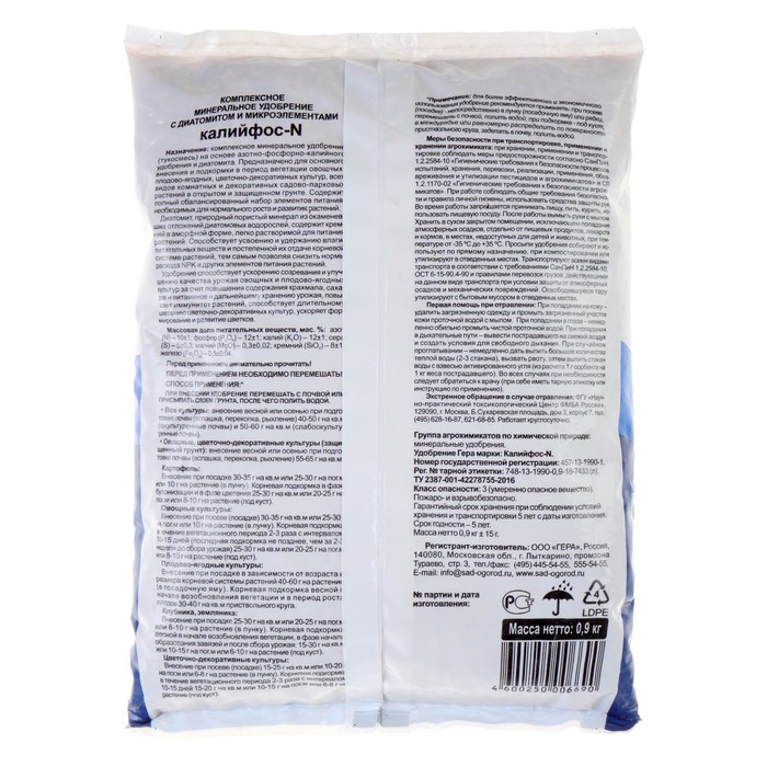 Минеральное удобрение «ГЕРА» Калийфос-N, 0.9 кг