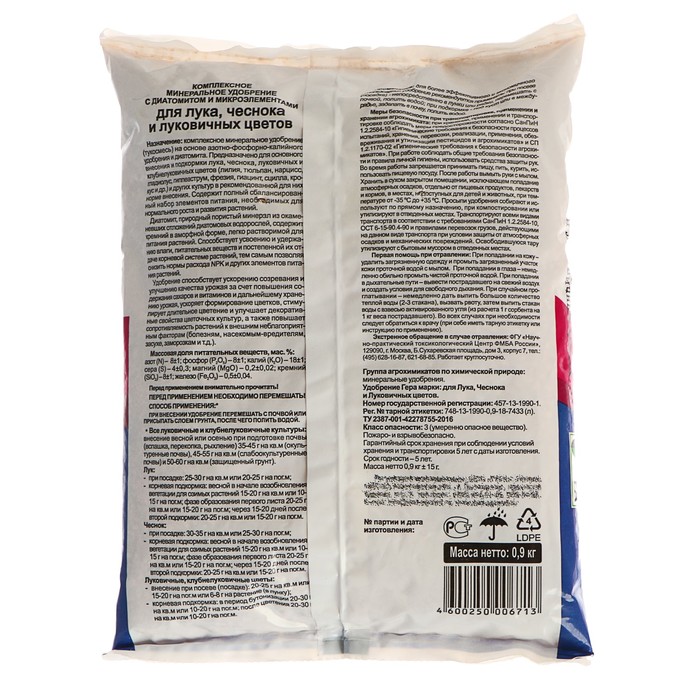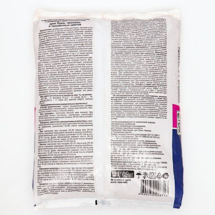 Минеральное удобрение с диатомитом «Гера» для Лука, Чеснок и Луковичных цветов, 0.9 кг