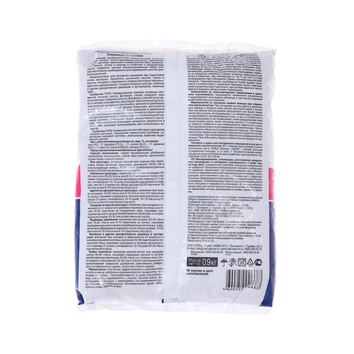 Минеральное удобрение с диатомитом «Гера» универсальное, 0.9 кг