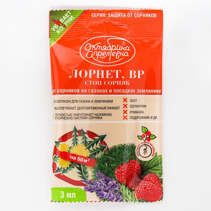 Гербицид для уничтожения сорняков на газоне и землянике «Лорнет», ампула, 3 мл