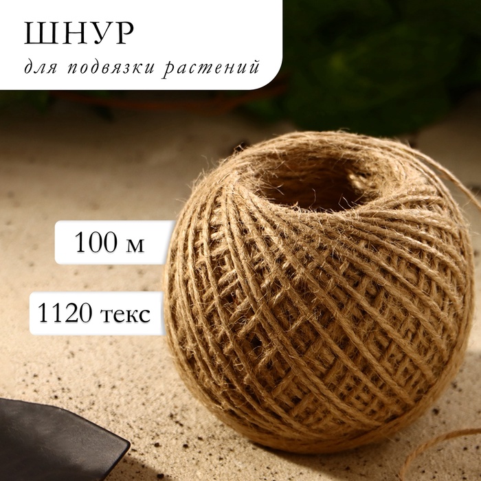 Шпагат джутовый для подвязки растений, 100 м, 1120 текс, 2 нити, джут, Greengo