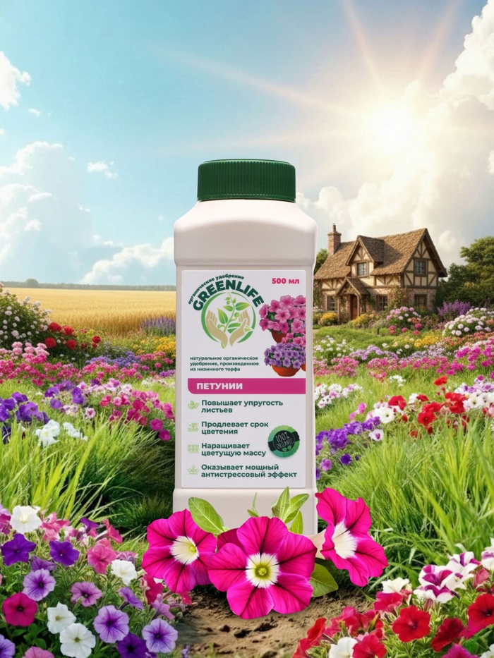 4. Простота применения. "Green Life" легко дозируется и применяется при посадке петуний или во время их роста, что делает процесс ухода за растениями максимально удобным.