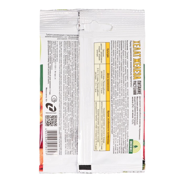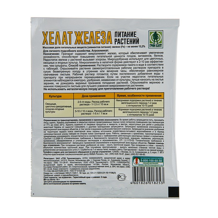 Препарат содержит микроэлемент железо, который обеспечивает увеличение урожайности, способствует повышению питательной ценности плодов, витаминов, белков. Недостатки железа у растений вызывает хлорозы. Микроудобрение используют для цветочных, ягодных и овощных культур. Микроэлементы в хелатной форме действуют в 2-10 раз эффективнее, чем сульфаты.