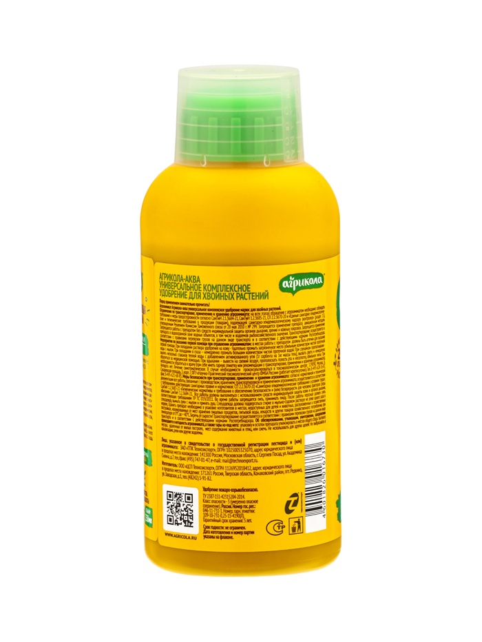 * Назначение: удобрение Агрикола-Аква для хвойных растений - концентрированное жидкое комплексное удобрение. Содержит сбалансированное количество макро- и микроэлементов, а также гуминовые кислоты. Предназначено для подкормок всех видов хвойных растений. Благодаря наличию гуминовых кислот и микроэлементов обеспечивается максимальная степень усваиваемости растениями вносимых питательных веществ и гарантируется оптимальная подкормка растений азотом, фосфором, калием и микроэлементами. Обеспечивает изумрудный цвет хвои благодаря повышенному количеству магния, серы, железа. Применение удобрения способствует усилению роста.