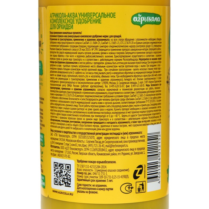 Удобрение Агрикола Аква для комнатных орхидей флакон 250 мл