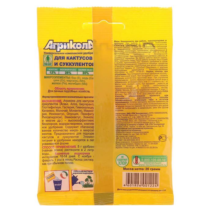 Удобрение Агрикола для кактусов и суккулентов 20 г