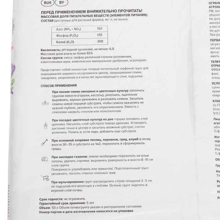 Грунт почвенный Цветочный "Торфяная поляна", 50л