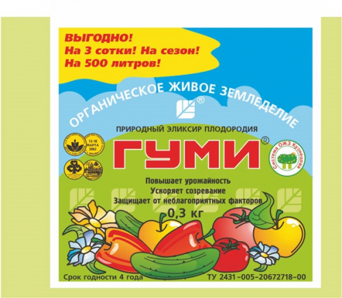 Гуми–мощный природный антистрессовый препарат, помогает при засухе, заморозках, похолодании, при посадке, пересадке и других неблагоприятных условиях роста.