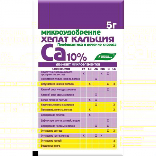 Буйские удобрения Хелат меди – комплексное органическое соединение, которое улучшает интенсивность фотосинтеза, способствует образованию хлорофилла, положительно влияет на углеводный и азотный обмены, повышает устойчивость растений против грибных и бактериальных заболеваний. Под влиянием хелата меди увеличивается содержание сахара в корнеплодах, жира – в зерне подсолнечника, крахмала – в клубнях картофеля, сахара и аскорбиновой кислоты в плодах и ягодах. Подкормки хелатом меди помогают предотвратить или устранить хлороз для всех видов растений. Симптомы применения: скручивание молодых листьев, поникание листьев.