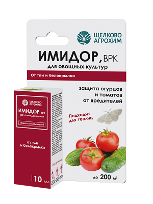 Средство «Имидор, ВРК» предназначено для борьбы с широким спектром вредителей на овощных культурах. Препарат проникает в листья растения и быстро распространяется по нему, защищая томаты и огурцы на долгое время. Уничтожает тлю, белокрылку и остальных вредителей за 24 часа. Не вызывает привыкания у насекомых. Эффективен при использовании в теплицах.