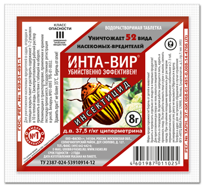 ИНТА-ВИР таблетка для Комнатных от комплекса вредителей (8х1г) / 50 шт Фаско