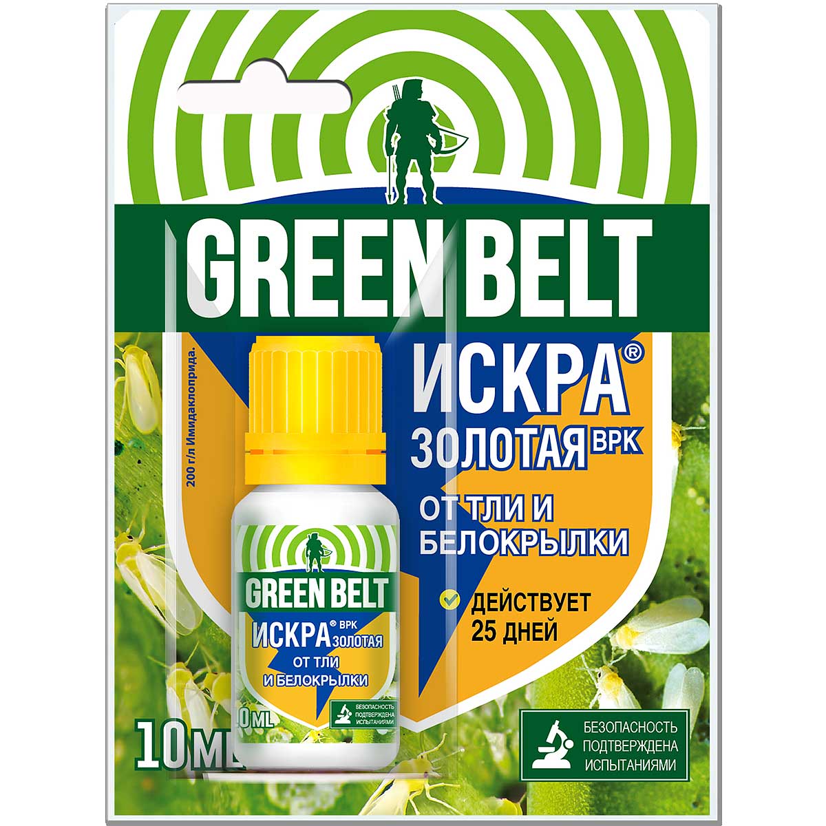 Известный инсектицид Искра Золотая на основе имидаклоприда — органический препарат от вредителей с длительным действием против сосущих, летающих и листогрызущих насекомых на сельскохозяйственных посадках. Для частных огородников выпускается в ампулах по 1 и 5 мл., а также флаконах по 5 и 10 мл. жидкого водорастворимого концентрата. Средство не распыляют вблизи пасек. Умеренный класс опасности для человека. Рабочие разведения препарата на протяжении сезона активно применяют: До 3-х раз на томатах, капусте и пр. от тлей и трипсов, блошек и стеблевых нематод, белокрылок и совок; До 2-х раз на картофеле от коровки, колорадского жука, картофельной мухи, моли; Однократно на декоративных посадках от калифорнийского трипса, филлоксеры, щитовки, цикад.