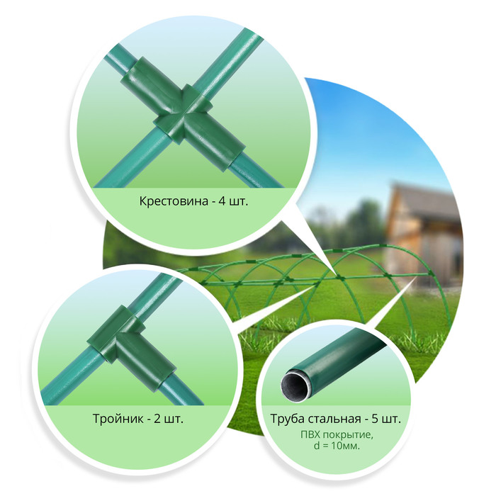 Комплект пригодится для придания парнику большей жёсткости и устойчивости. Для этого соедините между собой дуги с помощью перекладин и специальных соединительных элементов.