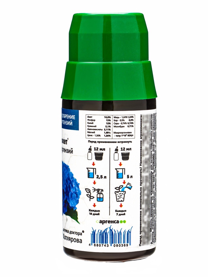 * Специализированный состав для гортензий: препарат разработан с учетом потребностей именно гортензий (крупнолистной, метельчатой, древовидной). Он восполняет дефицит микроэлементов, критически важных для яркой окраски соцветий, здоровья листвы и закладки цветочных почек.