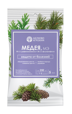 Фунгицид «Медея, МЭ» предназначен для профилактики и лечения хвойных пород деревьев от шютте и других болезней. Препарат быстро проникает в растение и останавливает заболевание на любой стадии его развития.