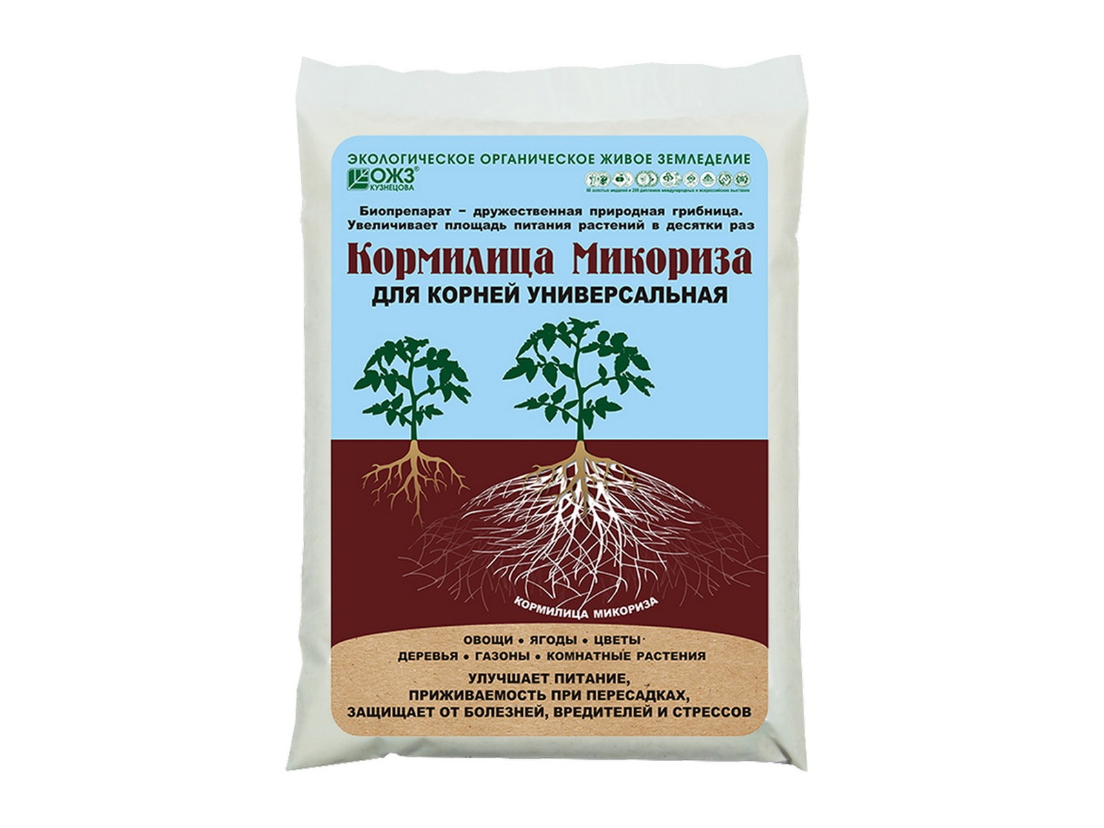 Кормилица Микориза содержит дружественные растениям грибы, которые формируют с корнями взаимовыгодный симбиоз. Благодаря этому всасывающая способность корневой системы возрастает на порядок, и растения значительно легче получают воду и питательные вещества. Кроме того, полезные грибы своим присутствием не дают развиваться болезнетворным микробам - это настоящий щит от болезней и стрессов. Снижает потребность растений в регулярном поливе и удобрении почвы минеральными веществами, особенно фосфатами. Повышает выживаемость саженцев при пересадке, в условиях засухи и низких температур.