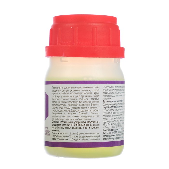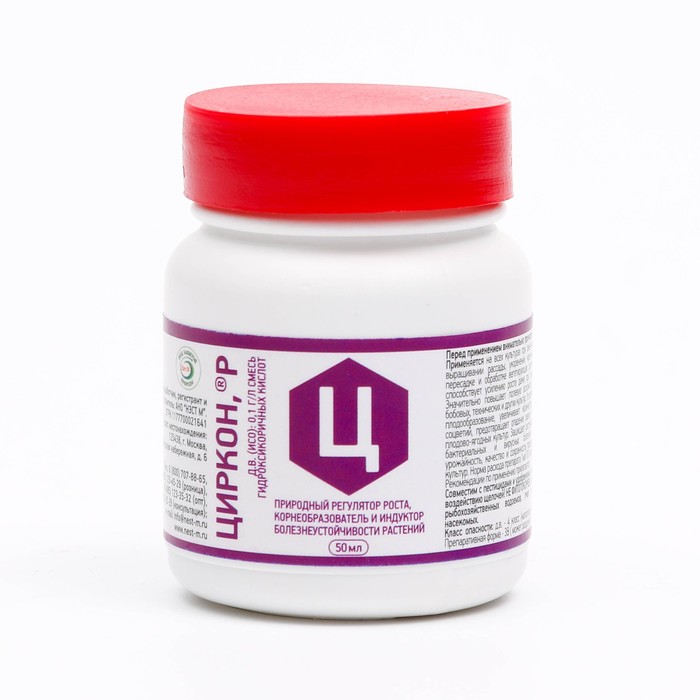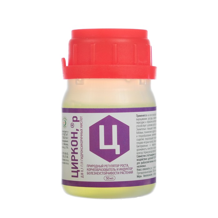 Многоцелевая добавка предназначена для ускорения прорастания семян, образования корней и интенсивного формирования плодов. Препарат «Циркон» содержит 0,1 г/л гидроксикоричных кислот, которые нормализуют обмен веществ растений и стимулируют естественную защиту от большинства распространённых фитопатогенов.
