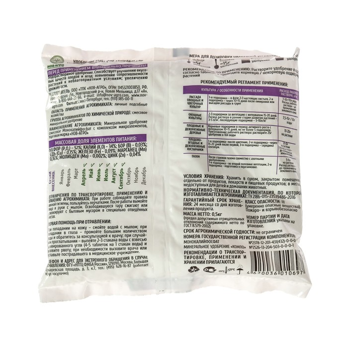 Также следует помнить о том, что Монокалийфосфат является химическим веществом и требует аккуратного хранения и транспортировки. Не допускайте попадания удобрения на кожу и слизистые оболочки, используйте защитные средства при работе с ним.