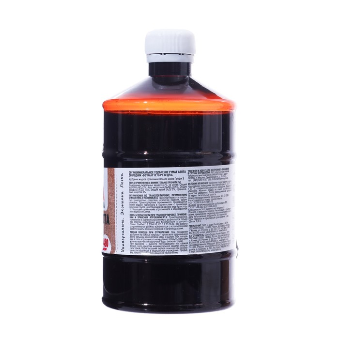 Удобрение органическое жидкое Бочка и четыре ведра, гумат Азота в бутылках, 600 мл