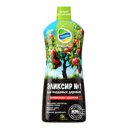 Органик Микс Эликсир №1 для плодовых деревьев– комплексное органическое удобрение с высоким содержанием питательных элементов и аминокислот. Уникальный быстродействующий состав обеспечивает высокую усвояемость, мощный рост, обильное цветение и плодоношение растений. Удобрение обладает биостимулирующим, антистрессовым и активизирующим развитие растений действием. Подходит для яблони, груши, вишни, сливы, черешни, абрикоса, айвы, хурмы и других. Применяется на протяжении всего цикла роста и развития растений, а также для восстановления после засухи, нападения вредителей и во время высокой потребности обмена веществ, такого как цветение или плодоношение.Преимущества:• ускоряет рост и развитие;• улучшает декоративный внешний вид;• увеличивает количество и размер плодов;• повышает содержание витаминов в плодах.
