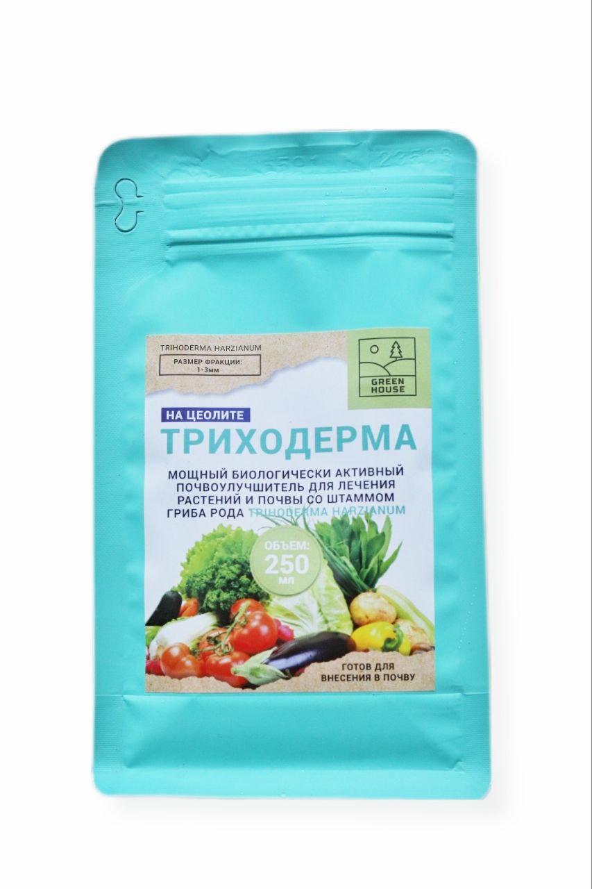 GREEN HOUSE Триходерма на цеолите– мощный биологически активный почвоулучшитель для лечения растений и почвы со штаммом гриба родаTRIHODERMA HARZIANUM. Продукт совместим с микробиологическими средствами, химическими фунгицилами, регуляторами роста, инсектицилами и гербицидами, не совместим с бактерицидами. Срок защиты корневой системы от почвенных инфекций – 8-9 недель с момента внесения в почве.Преимущества:• укрепляет иммунитет растений;• улучшает развитие корневой системы;• снижает нитраты и улучшает плодородие.