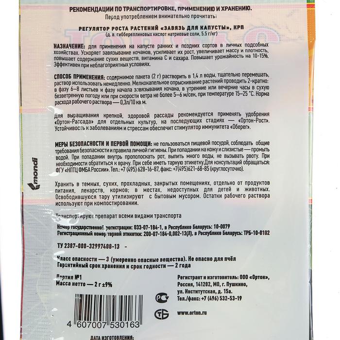 Стимулятор плодообразования "Завязь" для Капусты, 2 г