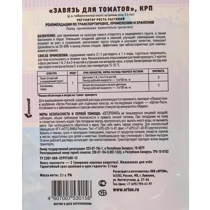 Стимулятор плодообразования "Завязь" для Томатов, 2 г
