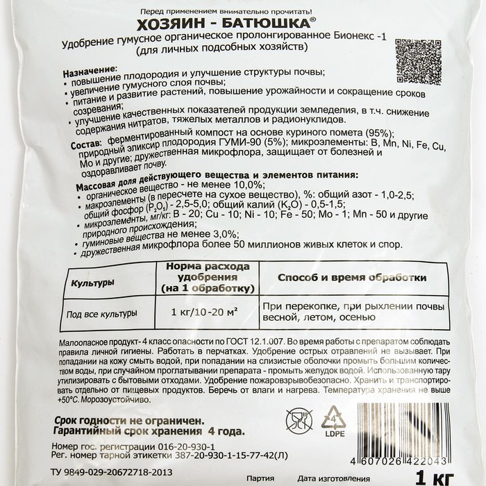 Удобрение органическое Бионекс-1 Хозяин-Батюшка, 1 кг