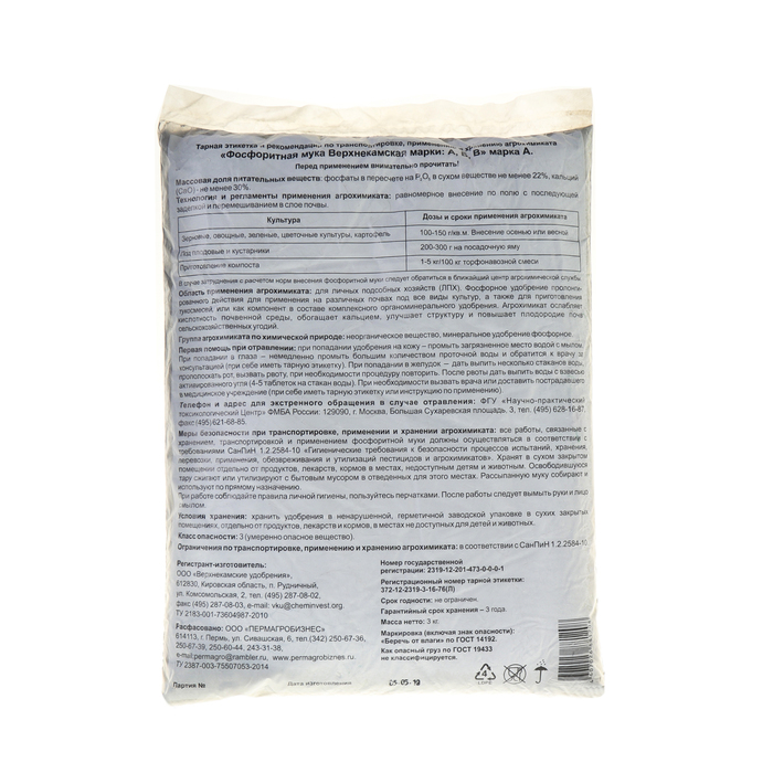 Удобрение минеральное «Пермагробизнес», Фосфоритная мука, 3 кг