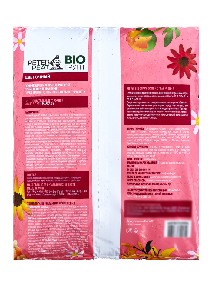 Грунт «Цветочный» линии BIO (БИО) содержит биогумус, отличается повышенным содержанием полезной микрофлоры, обогащён природными биологически активными веществами, стимулирующими рост мощной корневой системы растений, повышающими их устойчивость к неблагоприятным условиям окружающей среды (засуха, заморозки и т.п.). Наличие в грунте природного биофунгицида – триходермы – обеспечивает защиту от болезней (корневых гнилей, фузариоза, фитофтороза и т.п.). Гриб Триходерма выделяет природные антибиотики, обеззараживая почву. Добавление агроперлита улучшает водно-воздушные свойства грунта.
