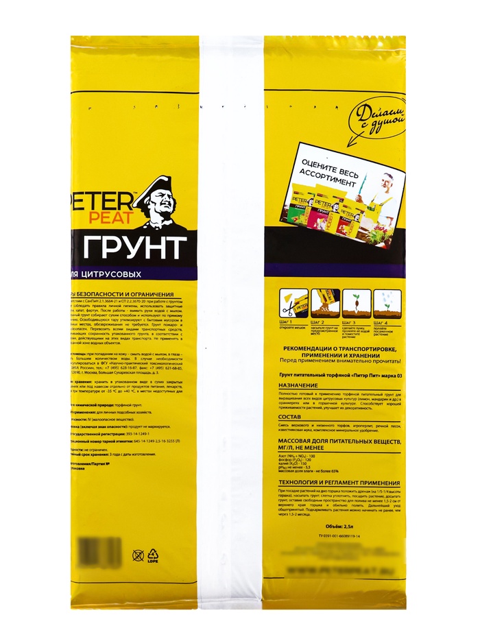 Назначение: питательный грунт для выращивания всех видов цитрусовых культур (лимон, мандарин и др.) в оранжереях или в горшках. Способствует приживаемости растений и улучшает их декоративные качества.