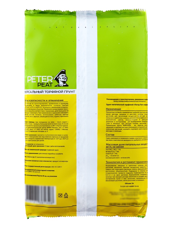 Назначение: полностью готовый к применению торфяной грунт для выращивания всех видов овощных, цветочных культур, плодовых деревьев и ягодных кустарников. Для заполнения посадочных ям и лунок, для формирования плодородного слоя в теплицах при закладке газонов, цветников и пр. Гарантирует активный рост и высокий урожай, обеспечивает развитие корневой системы, стимулирует все вегетативные процессы.