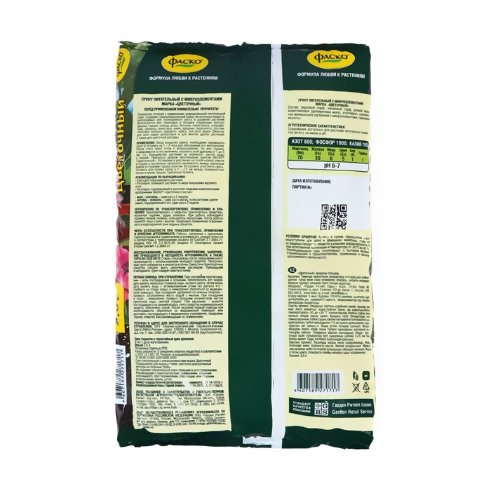 Почвогрунт Фаско Цветочный Универсальный, 2,5 л