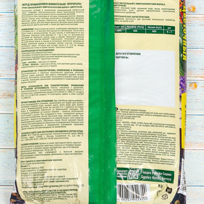 Почвогрунт Фаско Цветочный Универсальный, 5 л.